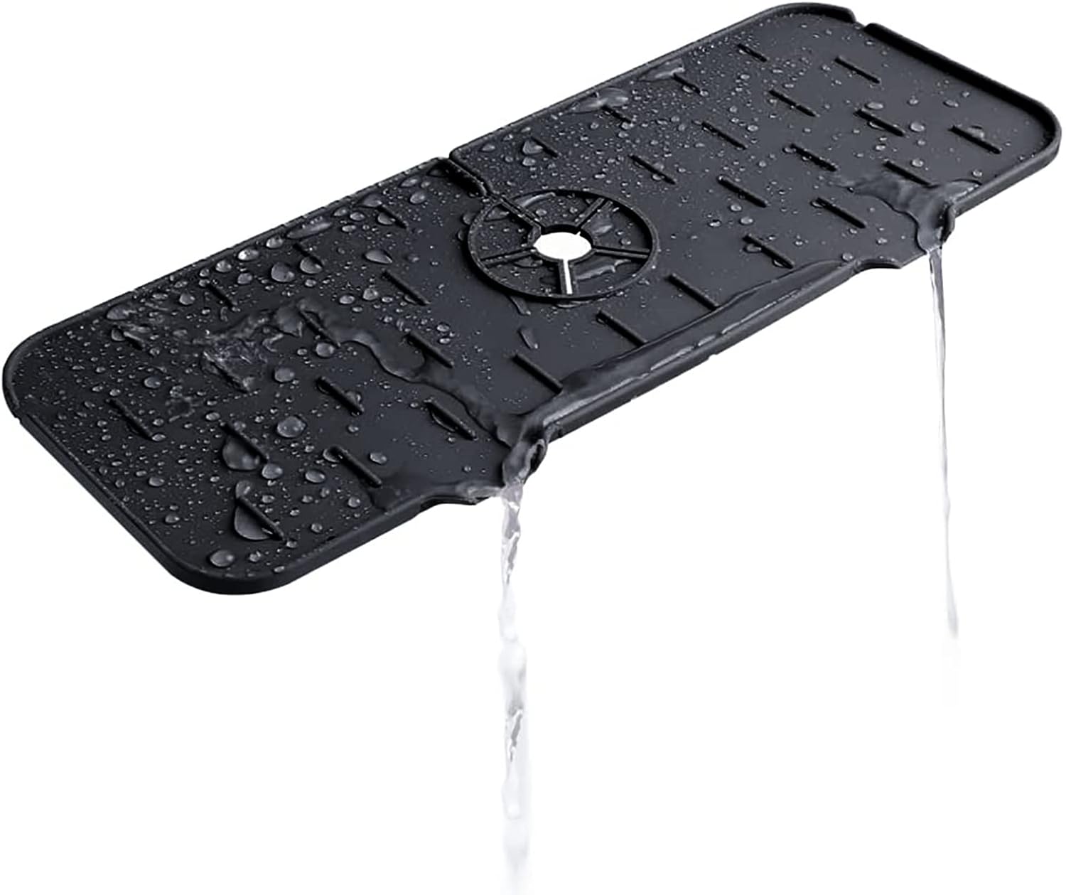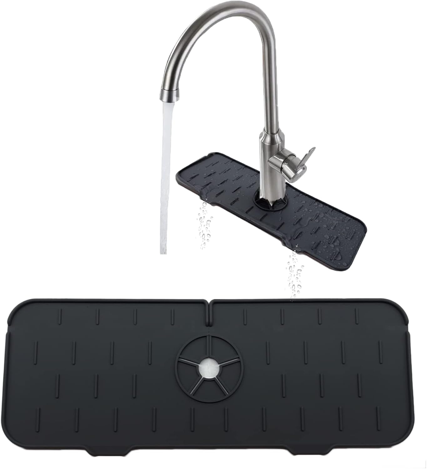 La bandeja colectora de goteo con mango de grifo de silicona está diseñada con función de drenaje, recoge el agua y la gotea en el fregadero.