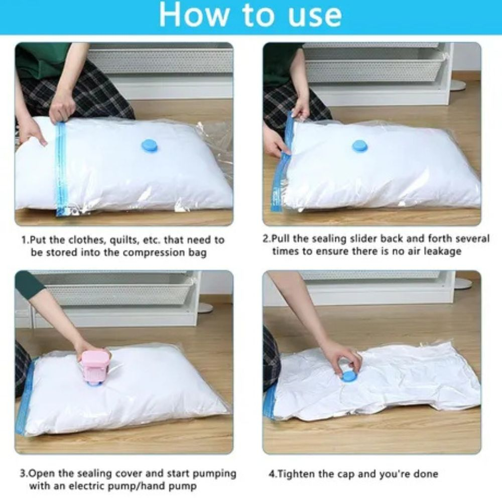 Bolsa de almacenamiento al vacio con cierre zipper y tapa a rosca.