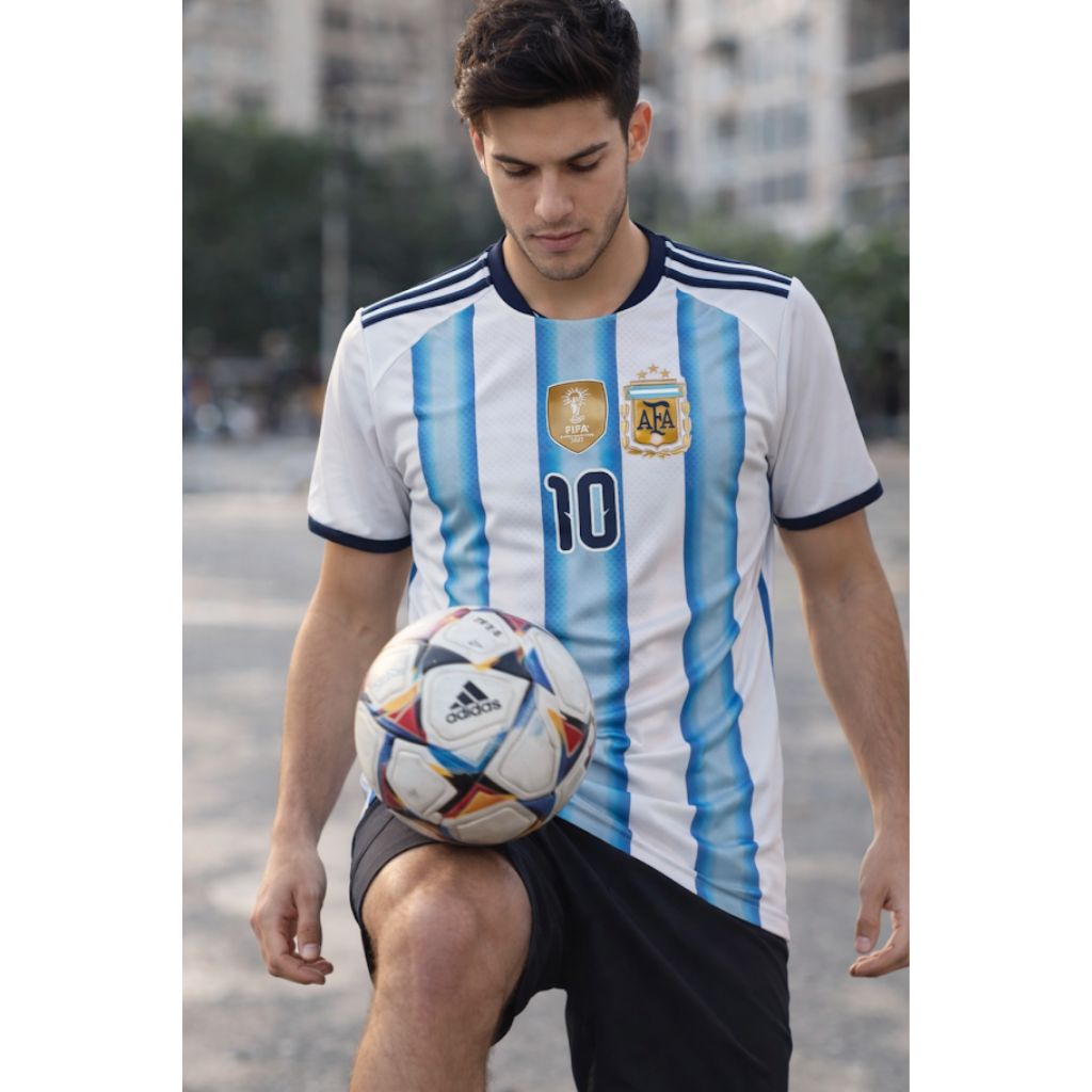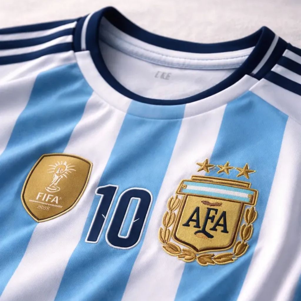 Camiseta de futbol de la seleccion argentina fabricada en poliester.