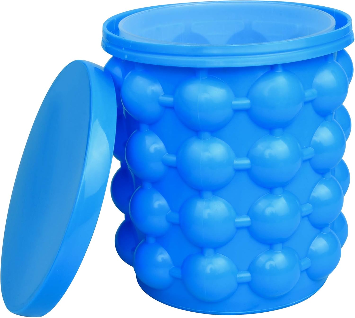 Conservadora hielera con cámaras externas que congelan los cubitos de hielo mientras que el cilindro interno los almacena.