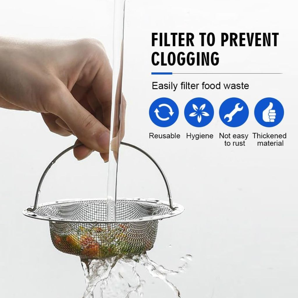 Filtro para la bacha de acero inoxidable con manija movil para facil uso.