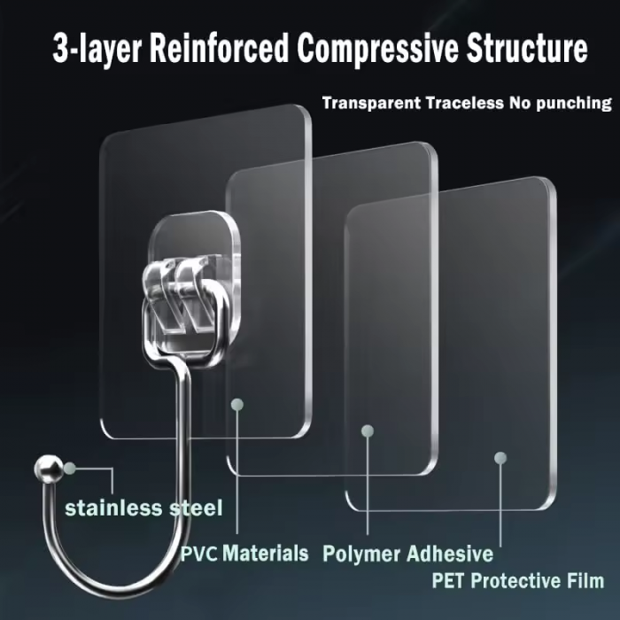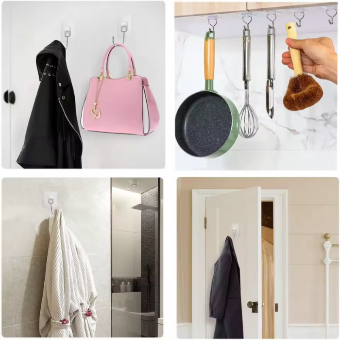 Gancho multifuncional: se puede usar con frecuencia en diferentes superficies como ladrillo, vidrio, metal, puertas de madera, metal, acero inoxidable y es especialmente adecuado para colgar accesorios de ducha o bañera en electrodomésticos de baño o cocina o herramientas en azulejos.