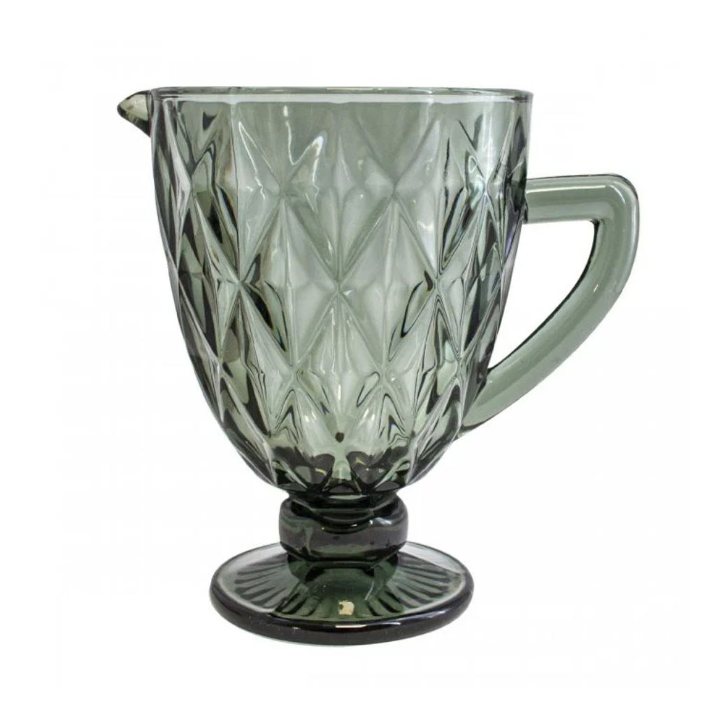 Hermosa Jarra de vidrio con detalles en rombos. Ideal para una tarde de merienda para servir agua, té frio, jugos, cocteles, entre otras. ¡No te la pierdas!