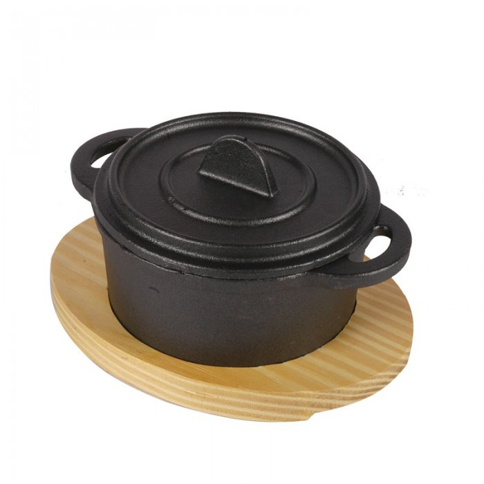 Mini Cacerola Horno Holanda Cazuela Con Tapa Hierro Fundido + Base de Madera
