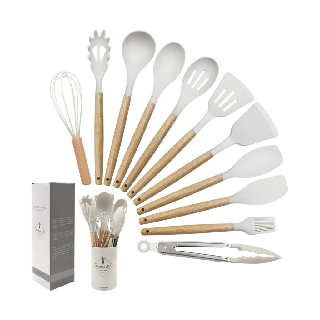 - Cantidad de piezas: 13 ( 12 Utensilios + Soporte)