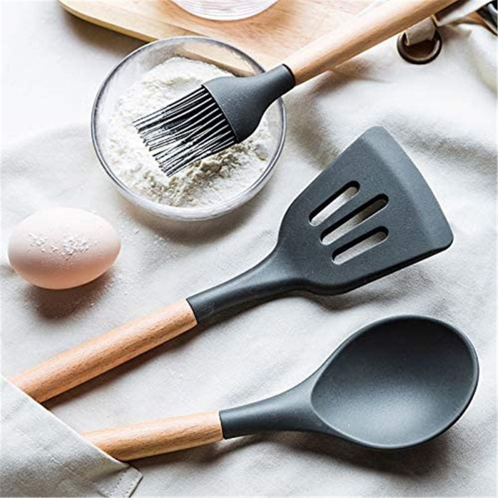 Set de utensilios de silicona, segura y de grado alimenticio: el juego de utensilios de cocina está hecho de silicona de grado alimenticio de la más alta calidad. Libre BPA. La silicona es segura de usar para cualquier tipo de alimento. El juego de utensilios de cocina no reacciona con alimentos o bebidas, ni produce humos peligrosos.