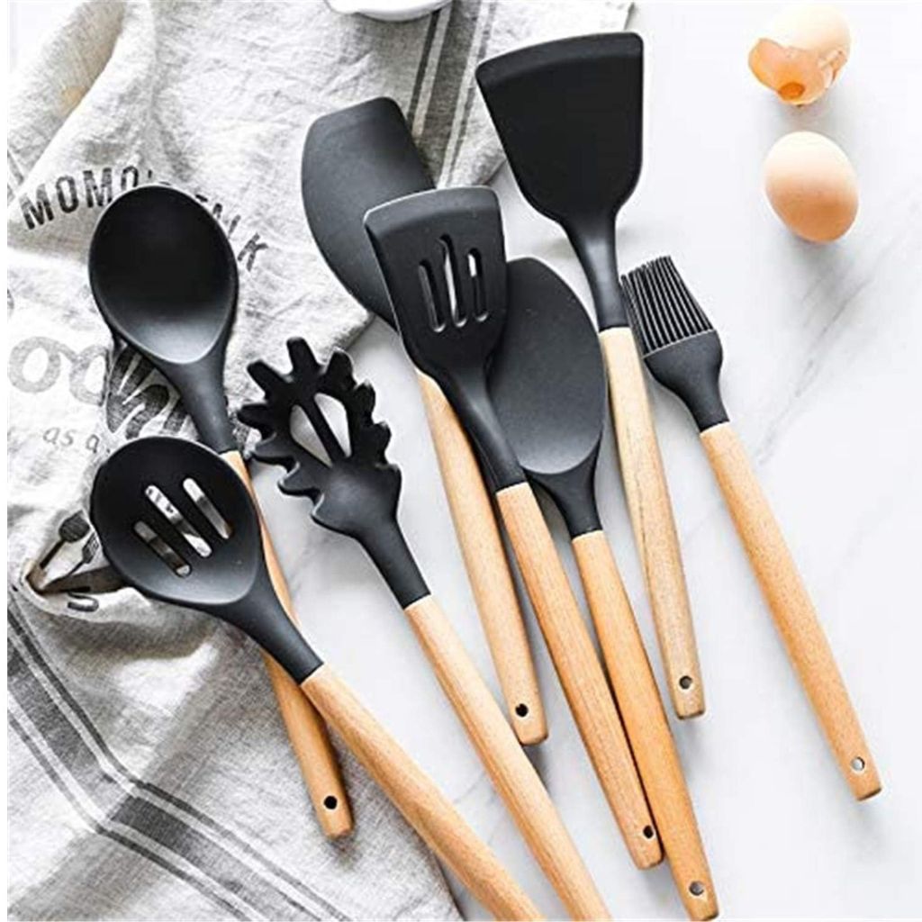 Set de utensilios de silicona, segura y de grado alimenticio: el juego de utensilios de cocina está hecho de silicona de grado alimenticio de la más alta calidad. Libre BPA. La silicona es segura de usar para cualquier tipo de alimento. El juego de utensilios de cocina no reacciona con alimentos o bebidas, ni produce humos peligrosos.