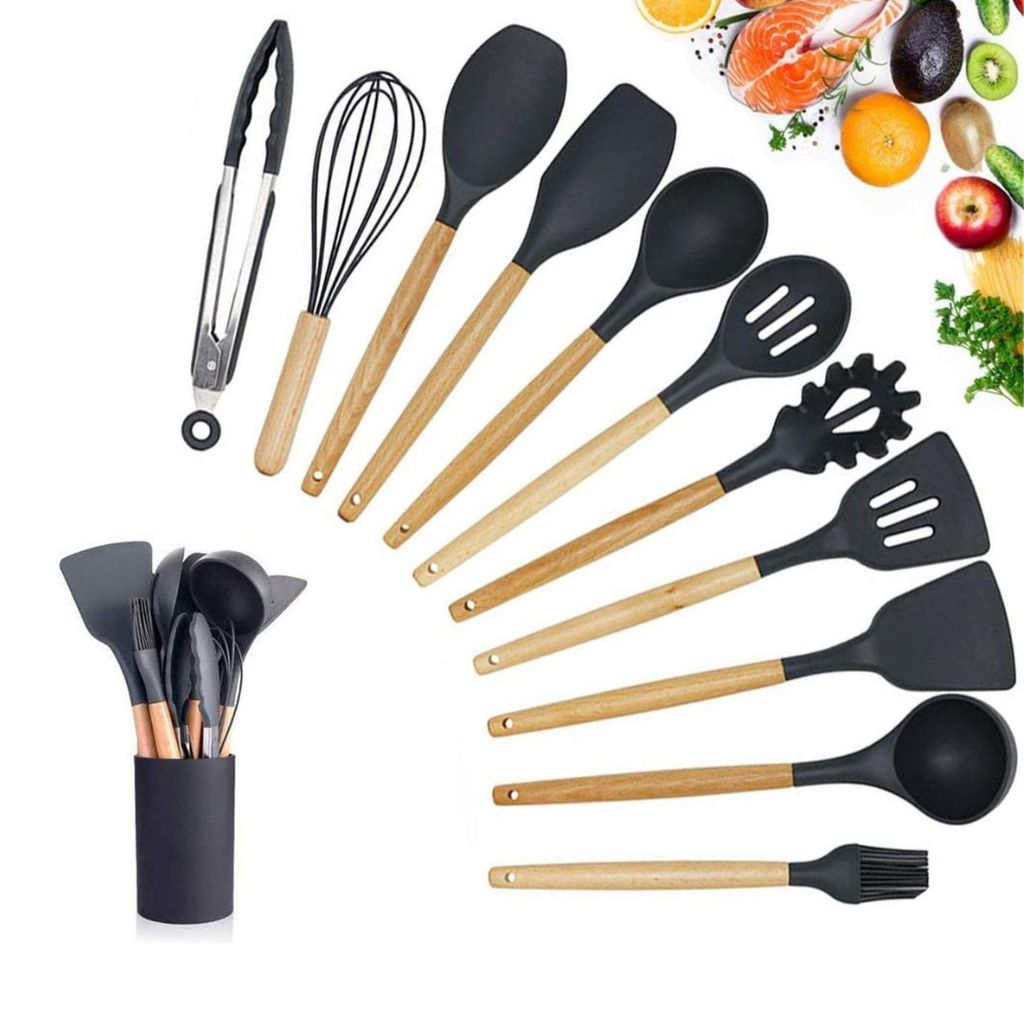 - Cantidad de piezas: 13 ( 12 Utensilios + Soporte)