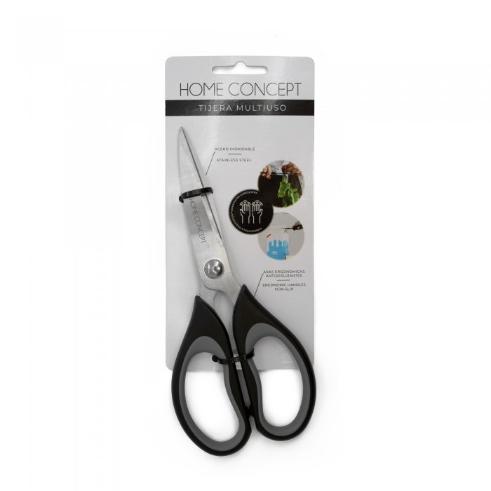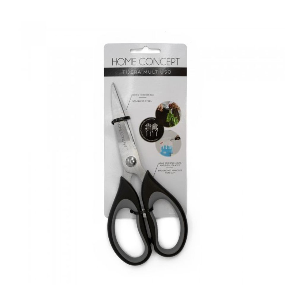 La Tijera Multiuso Home Concept de Acero Inoxidable es una herramienta esencial para cualquier amante de la cocina. Fabricada con acero inoxidable de alta calidad, esta tijera es perfecta para cortar hierbas, carnes y verduras con precisi?n y facilidad. Su dise?o de corte recto permite un manejo c?modo y seguro, mientras que su resistencia al desgaste garantiza una larga vida ?til. Adem?s, su mango ergon?mico proporciona un agarre firme y c?modo, lo que la hace ideal para tareas de cocina prolongadas. Ya sea que est?s preparando una comida gourmet o simplemente cortando ingredientes para la cena familiar, Tijera Multiuso Home Concept de Acero Inoxidable es la elecci?n perfecta para todas tus necesidades de corte en la cocina.