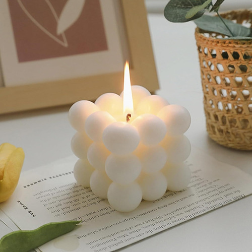 Vela tridimensional de soja en forma de cubo elegantes y modernas, que añadirán elegancia a tu decoración. Limpio y simple, va directamente a cualquier espacio y te ayuda a disfrutar de un aroma simple y elegante en cualquier lugar.